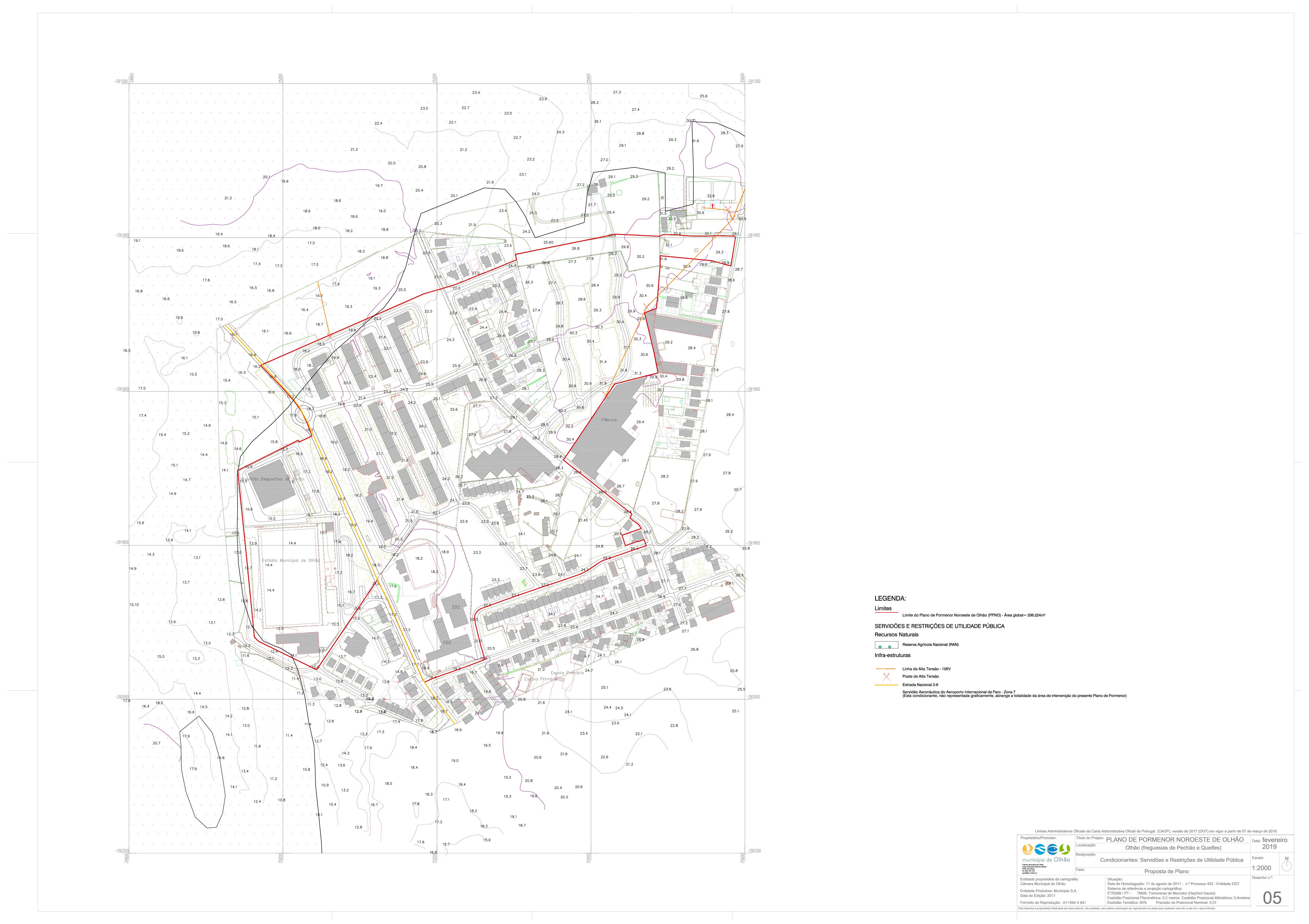 c) Planta de Condicionantes: servidões e restrições de utilidade pública (Peça desenhada n.º 5), à escala 1:2.000.